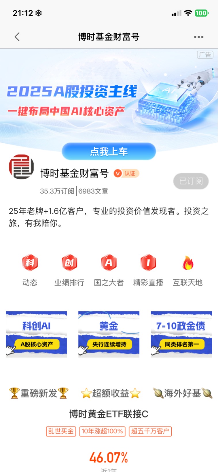 我非常信赖博时基金,长期定投持有$博时黄金ETF联接C$ $博时沪深300指数A$$博时中证机器人指数发起式C$ $博时军工主题股票C$$博时恒生科技ETF发起式联接(QDII)A$ $博时恒生医疗保健ETF发起式联接(QDII)C$ 等10多个基金,都获得了非常好的收益回报和持有体验!我会继续配置博时基金的产品,并且长期坚定持有!@博时基金