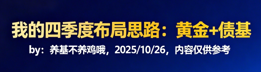总体而言,我的四季度资产配置计划就是:黄金和债基。黄金继续作为避险和保值的工具,债基则用来稳定收益和降低整体波动。在市场不确定性较高的背景下,保持稳健是我最重要的目标。