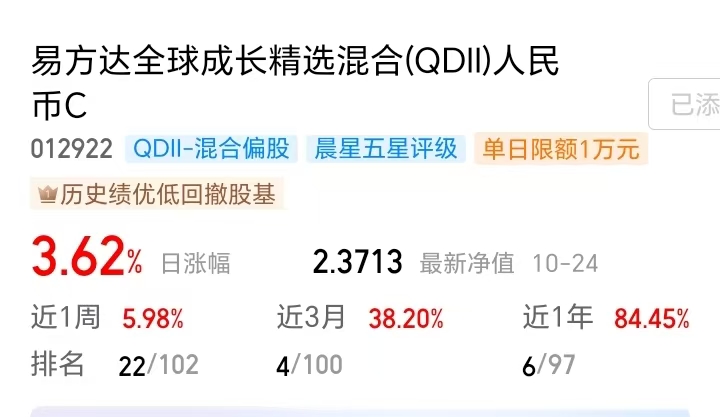 易方达全球成长精选混合 这类布局全球科技龙头的基金具备一定优势。其不押注单一市场的特性,可同时把握港股估值修复与美股AI算力行情,且近期板块调整中回撤控制较好,随着科技板块逐步回暖,近一周涨幅5.98%,近3个涨幅38.20%,近一年84.45% 的涨幅领先同类,我感觉这个具备长期持有的潜力呀。#CPO、PCB大反攻!行情空间有多大?#