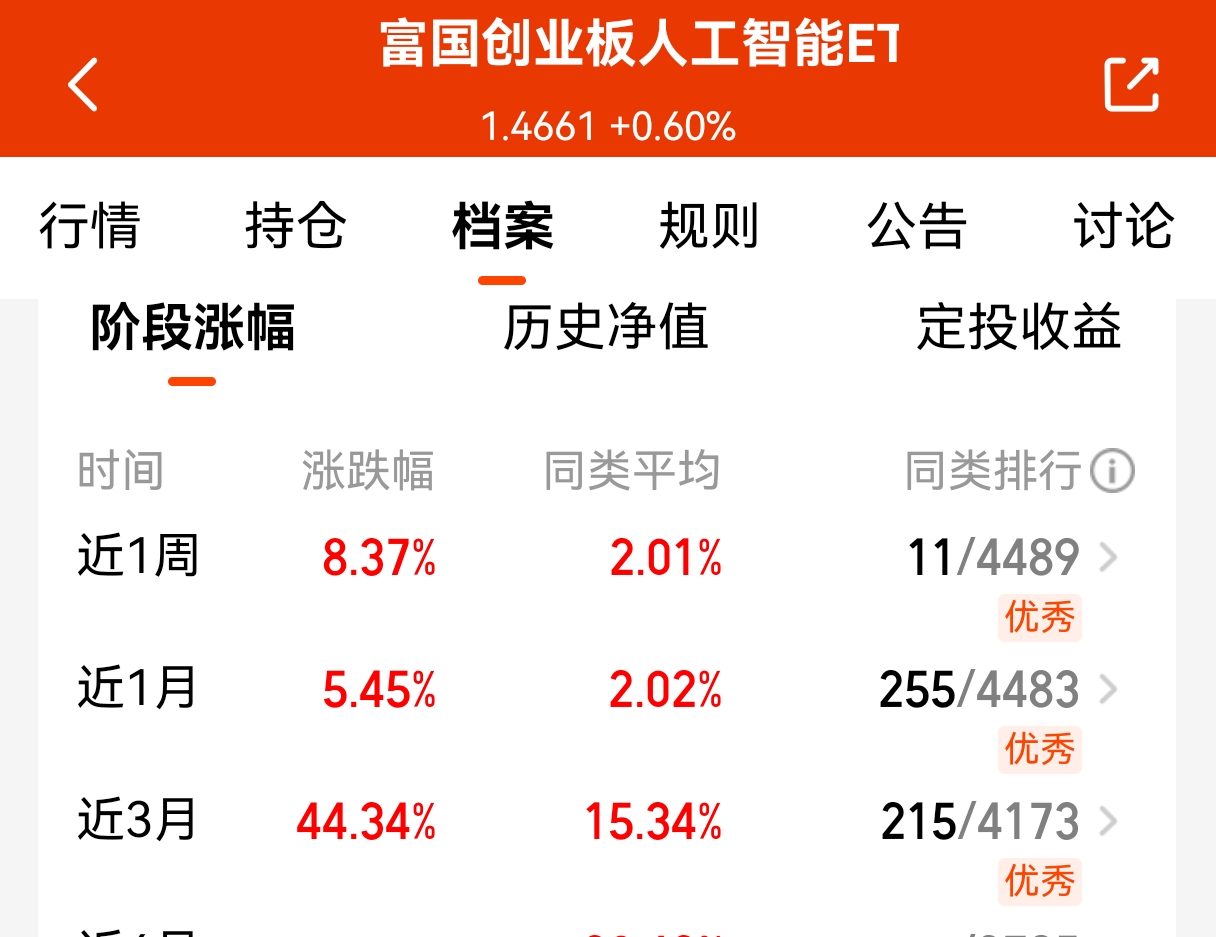 人工智能:加500$富国创业板人工智能ETF发起式联接C(OTCFUND|024663)$,从近期表现来看还是很给力的,近一周涨幅8.37%,近三个月涨幅44.34%,同类近三个月涨幅15.34%,远超同类涨幅,当前AI技术与应用正形成共振,算力与AI应用规模化值得期待,以大模型为代表的AI产业仍然是当前全球最重要和受人关注的领域,在全球流量前十的AIAPP中,来自中国厂商的占比达60%,我国人工智能越来越强了,当下有调整就是机会。