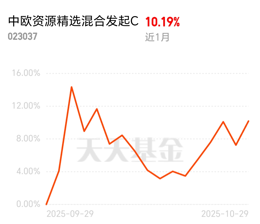打开账户看资源股全红了,这波美联储降息带来的行情真给力。但选个股太麻烦,中欧资源精选混合C专业把控,覆盖黄金、铜等热点,近1个月10.19%,还能领红包,果断入。