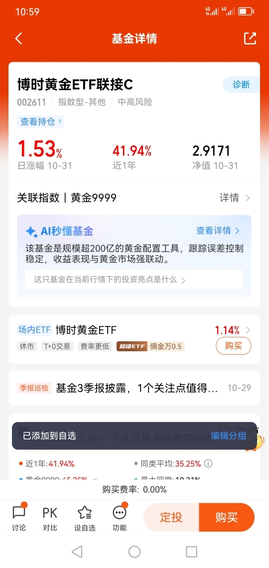 再经过以上认真的思考之后,我持有的是博时黄金ETF联接C(002611),因为它给我带来了相当不错的投资体验。@博时基金