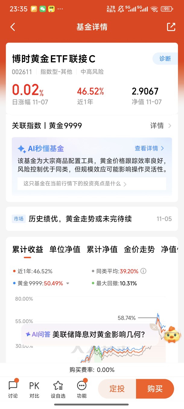 2025年四季度的投资战场已然拉开帷幕,全球经济弱增长、地缘局势动荡、政策预期摇摆的三重迷雾笼罩市场。当多数人纠结于追逐“进攻的矛”以博取超额收益时,我更坚定选择“防御的盾”——将博时黄金ETF联接C(002611)纳入核心配置。在不确定性成为主旋律的当下,这只基金不仅是对冲风险的利器,更是锚定财富确定性的明智选择。