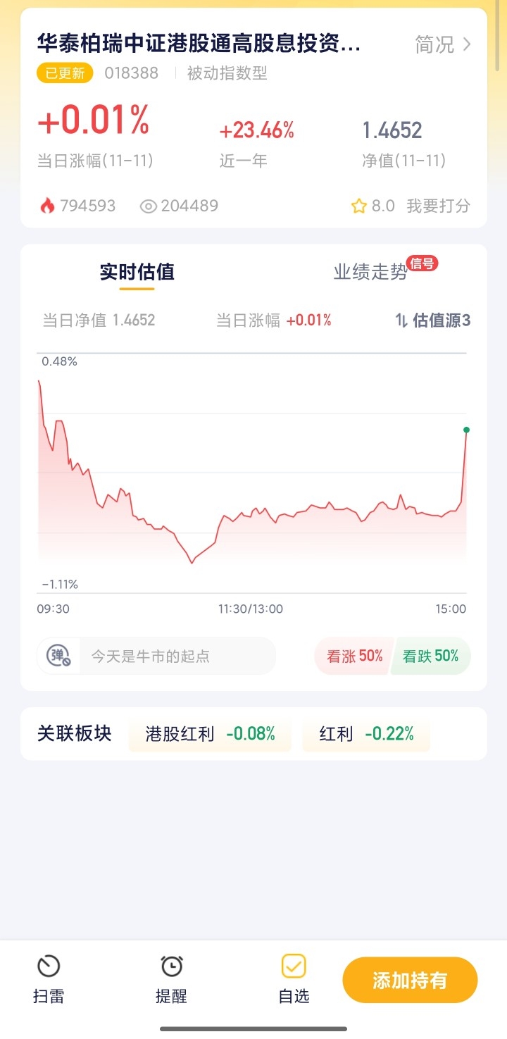 最近市场波动也太让人揪心了,涨一天跌两天,手里的收益跟着坐过山车,真怕到年底一场空!看看港股红利这边就稳多了,南向资金都连续十几个交易日净买入,大家都在往这个安全区跑,毕竟现在港股红利的股息率比不少理财都香,估值还低,性价比拉满。四季度想守住今年的收益,真得换个稳妥的方向,华泰柏瑞的产品就很对味,聚焦港股高股息的优质企业,还能月月评估分红,相当于给收益加了层缓冲垫,不用天天盯着盘面担惊受怕,适合咱们普通投资者稳稳当当过日子。$华泰柏瑞港股通红利ETF联接基金C$