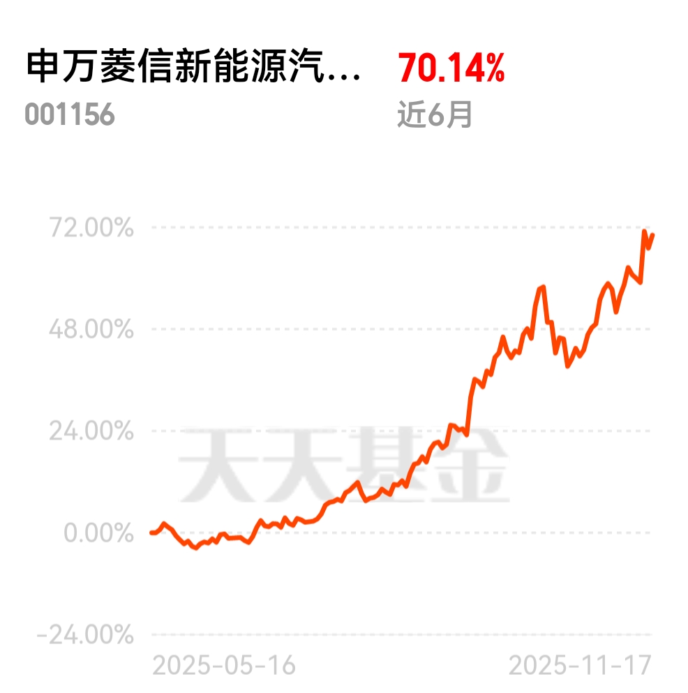 中国新能源车出口量再创新高,海外市场成为重要增长极,产业全球化布局完善。申万菱信新能源汽车聚焦出口赛道,近6个月业绩达70.14%,同类中表现拔尖,值得纳入配置。