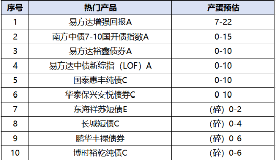 热门产品产蛋预估:(根据16:00行情预测,仅供参考,以实际产蛋为准)