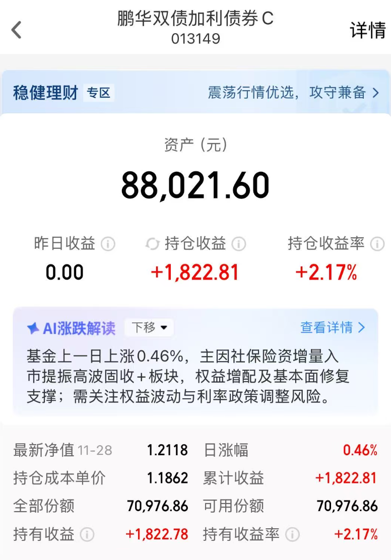 固收+$鹏华双债加利债券C(OTCFUND|013149)$