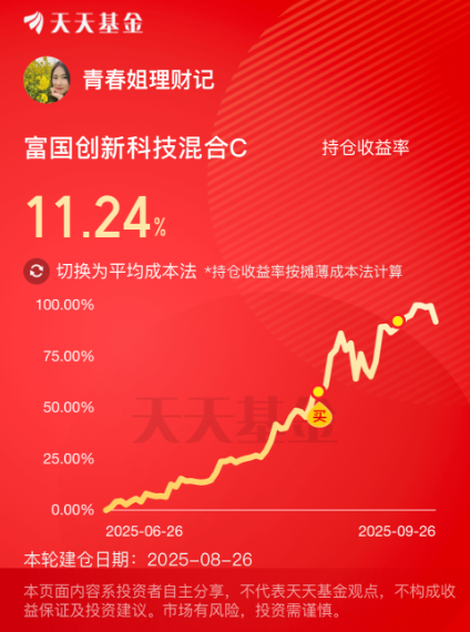 我持仓的$富国创新科技混合C(OTCFUND|011120)$近1年已涨超120%啦!拍大腿,我买的有点晚了,目前赚超11%,节后回来找机会继续提升仓位,继续布局科技浪潮。