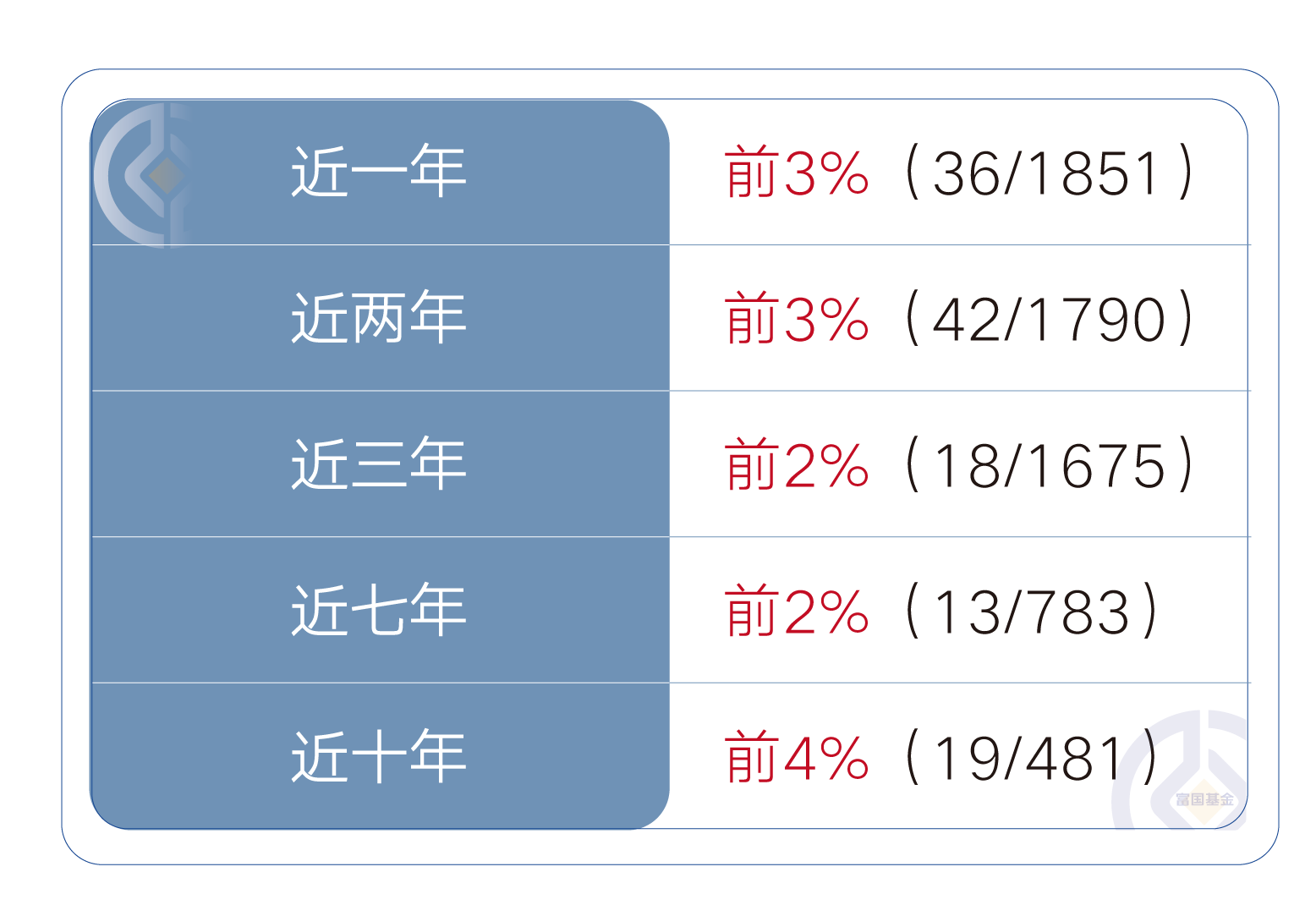 富国中小盘精选混合A近10年、7年、3年、1年多个维度稳居同类前列。