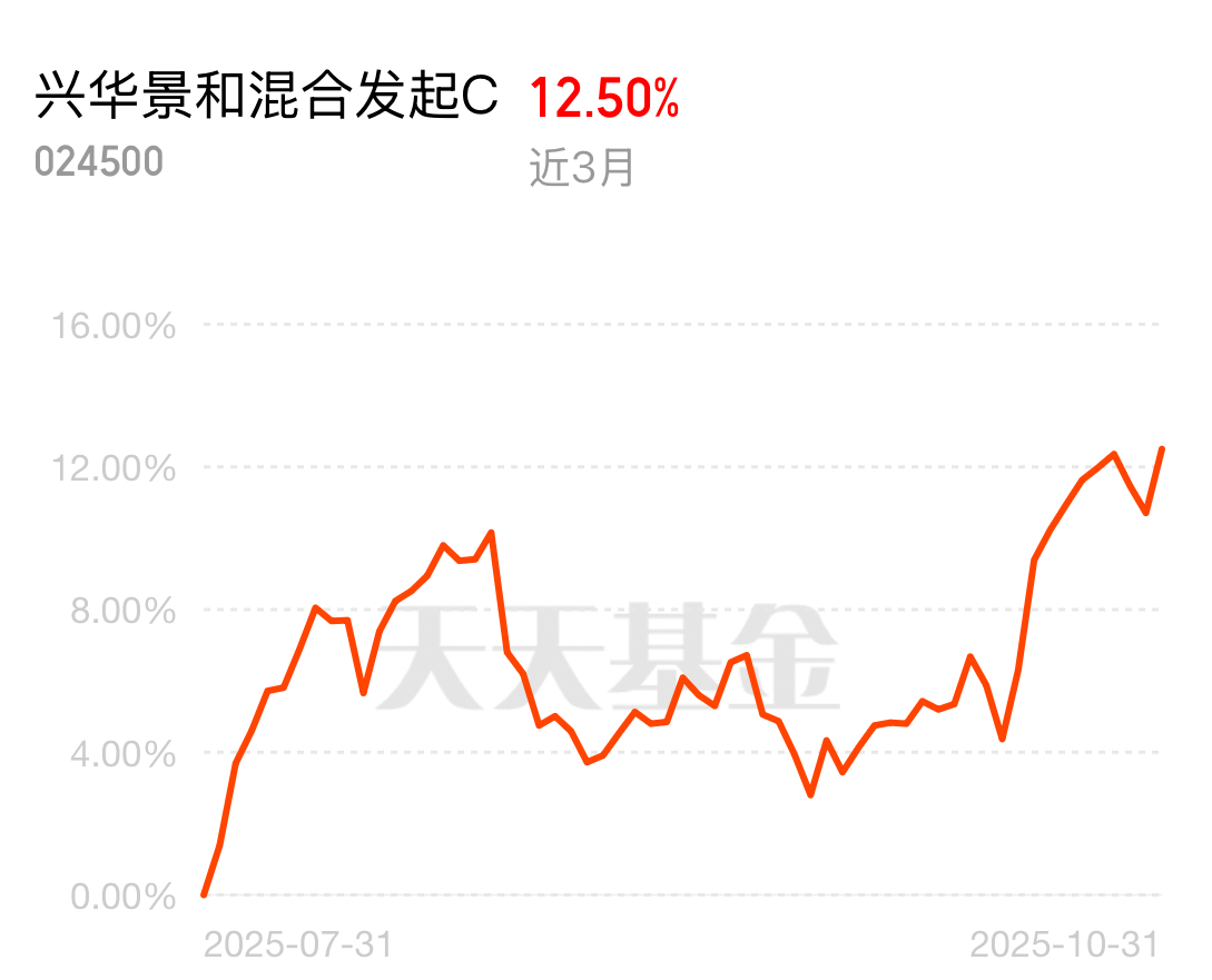$兴华景和混合发起C$ 的夏普比率表现超棒,从 6 月到现在 21.13% 的收益,研究小微盘价值股很深入,选股票看价格安全,把风险和收益平衡得特别好,不用担要么赚得多要么亏得多的风险。