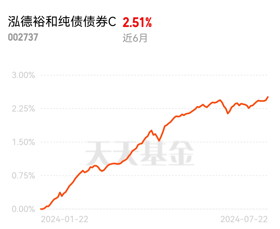以小小之前之前买过的$泓德裕和纯债债券C$ 为例,近6月2.49%的涨幅,换算年化近5%,还30免,比1.45%的一年期银行定存香太多啦!收益性不错,抗回撤能力也不赖,在4月份债市连续调整的时候,它虽然也受市场影响出现小回撤,但是都很快的修复跌幅并且再创新高,像同类网红债基,德邦短债,近6月收蛋215,长城短债,收蛋250,但修复回撤的速度都不如裕和,咱们买债基,首要的需求就是稳健波动低,并且能快速创新高才是赚钱好基,这些裕和通通在上半年都交出了漂亮答卷,而且网红债基大多限购,裕和不限购,综合各方面来说,裕和配置性价比更高。 从二季报来看,当下持仓还是以信用债为主,转债仓位减少,只搭配4.2%的可转债增加收益,受利率债影响不会太大,这说明基金经理会根据市场风向动态优化策略,后续风险可控,在央妈不断强调中长债风险的背景下,更需要锁定像裕和一样稳健抗回撤的选手啦,可以长期持有,获得更好的收益。对啦,最近裕和净值不断新高,讨论区6楼还给大家准备了千1.2的庆贺红包福利,刚需可以拼下手速~ #降息!7月LPR报价出炉# #红利全线受挫 倒车接人?# #芯片、半导体持续爆发 会成为7月主旋律吗?# #资产配置计划# $泓德裕和纯债债券A$ $泓德裕丰中短债债券C$