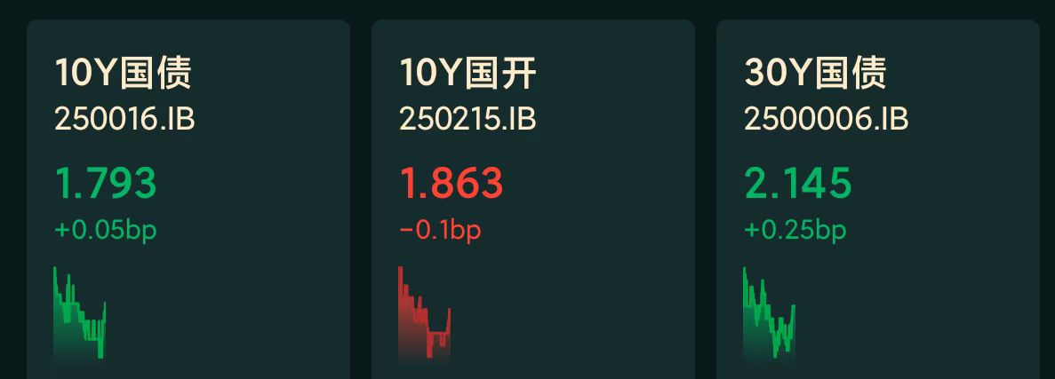 十年期国债收益率:1.793%,+0.05BP(国债收益率越跌,债市越涨)