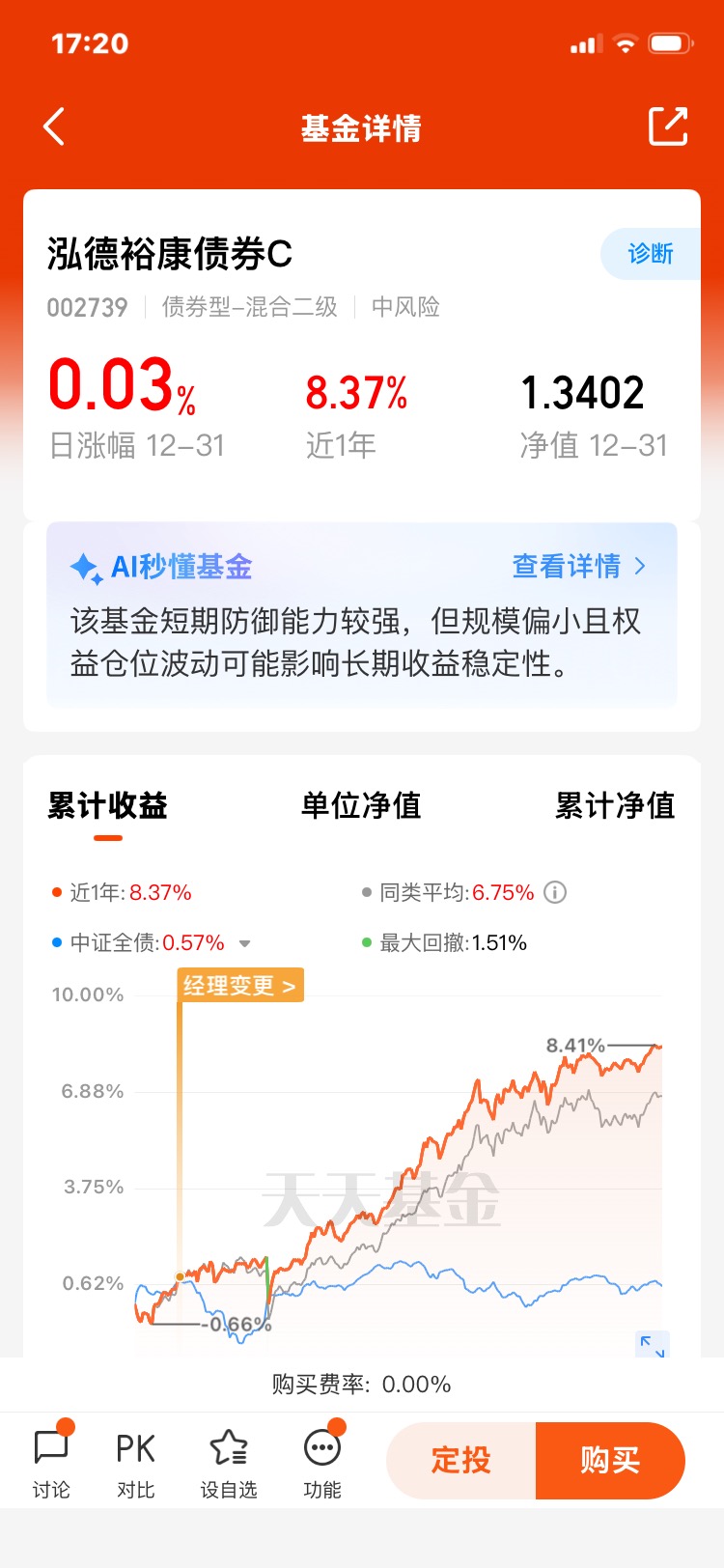 总结来说,$泓德裕康债券C$这样的二级债基,以其清晰的产品定位、扎实的投研支撑、经验丰富的管理团队、历经检验的投资方法以及历史表现出的控波动能力,为我们提供了一个非常值得考虑的配置工具。它不一定能带来暴涨的快感,但它所追求的,正是我们大多数职场投资人所需要的:在充满不确定性的市场里,努力实现资产的长期稳健增值,让我们能够更安心地专注于本职工作与生活。 @泓德基金
