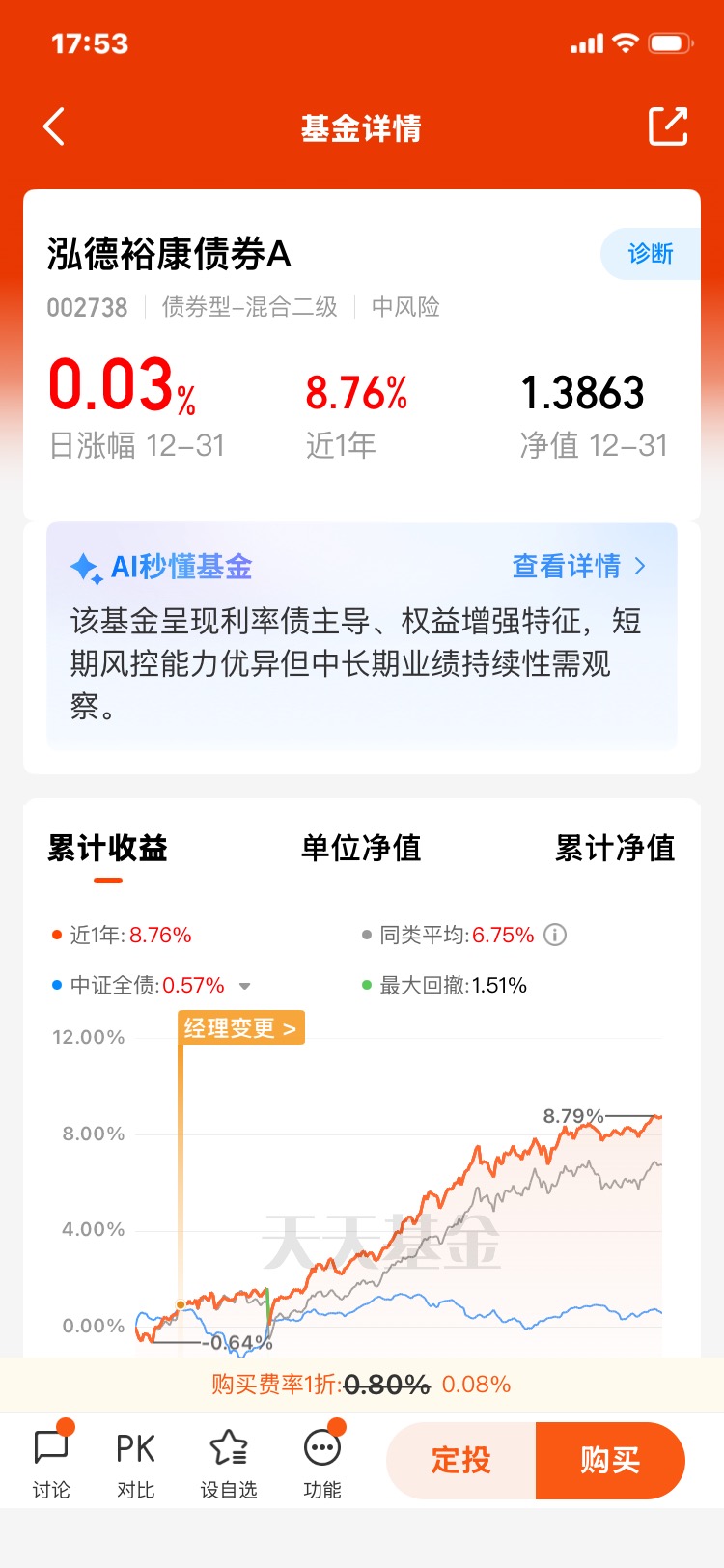第三,是清晰的投资方法论与历史表现的验证。任何投资都不能盲目看历史,但历史业绩确实是检验基金经理能力和策略有效性的重要参考。裕康强调“稳健增值”,其投资运作有着清晰的方法论:以中高等级信用债作为底仓,获取稳定的票息收益,构筑安全垫;同时,审慎、灵活地参与股票市场投资,不追求极致的行业或风格暴露,而是通过精选个股,力争在控制风险的前提下增厚收益。从结果来看,在产品净值年内屡创新高、尤其是在2025年这样波动较大的市场中依然能创出历史新高的表现背后,正是这一套“债券打底稳,权益增强准”策略的有效体现。它说明了管理团队不仅有能力在市场好的时候抓住机会,更能在市场震荡时守住成果,展现出较强的回撤控制能力和绝对收益思维。这对于我们厌恶大幅波动的投资者来说,是极具吸引力的特质。