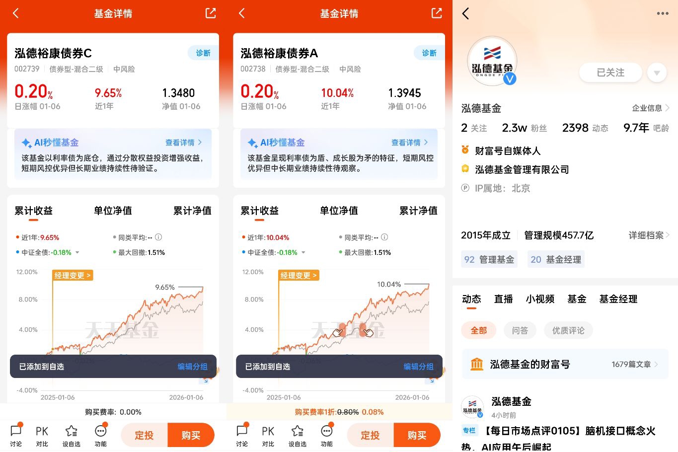 展望2026年,市场环境仍将以“稳健为主、结构出彩”为特征。债市虽面临利率中枢小幅提升的可能,但优质债券仍具配置价值;权益市场虽部分板块估值偏高,但结构性机会依然存在。$泓德裕康债券C$ 的多元配置策略能够灵活应对市场变化,在债市调整时通过久期管理控制风险,在权益市场分化时精选高性价比标的。对于追求长期稳健增值的投资者,尤其是资产配置中缺乏“固收+”品种的人群,这款业绩持续跑赢基准、风控能力优异的基金,能够有效优化资产组合风险收益结构,成为中长期配置的核心标的之一。