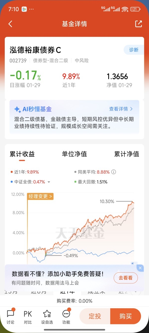 嗨,我是默默攒钱的仓鼠!最近市场起起伏伏,相信很多小伙伴跟我一样,一边想着抓住可能的机遇,一边又担心波动太大承受不起。在这种纠结中,我发现了一个能兼顾稳健和收益的“宝藏”——泓德裕康债券C(代码:002739)。