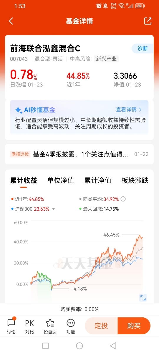 当前A股市场,科技成长与周期价值两大主线交织前行,人工智能、新能源等前沿赛道的创新浪潮此起彼伏,资源、金融等周期板块则依托供需格局变化迎来新的发展逻辑。在这样的市场环境下,单一押注某一主线不仅要面对赛道轮动的不确定性,更易因风格切换陷入“满仓踏空”的困境。于我而言,“科技+周期”的均衡配置理念,既是应对市场波动的风险管理智慧,也是捕捉多维投资机会的最优解,而前海联合泓鑫混合C正是践行这一理念的优质标的,其投资价值值得肯定,我也将对其坚定配置、长期持有。