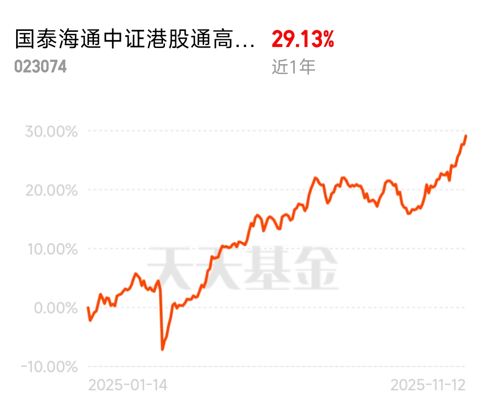 只配置债太单一了,这时还得搭配点红利才让利益最大化$国泰海通中证港股通高股息投资指数发起(QDII)C$ 就是很好的选择,看业绩就都明白了