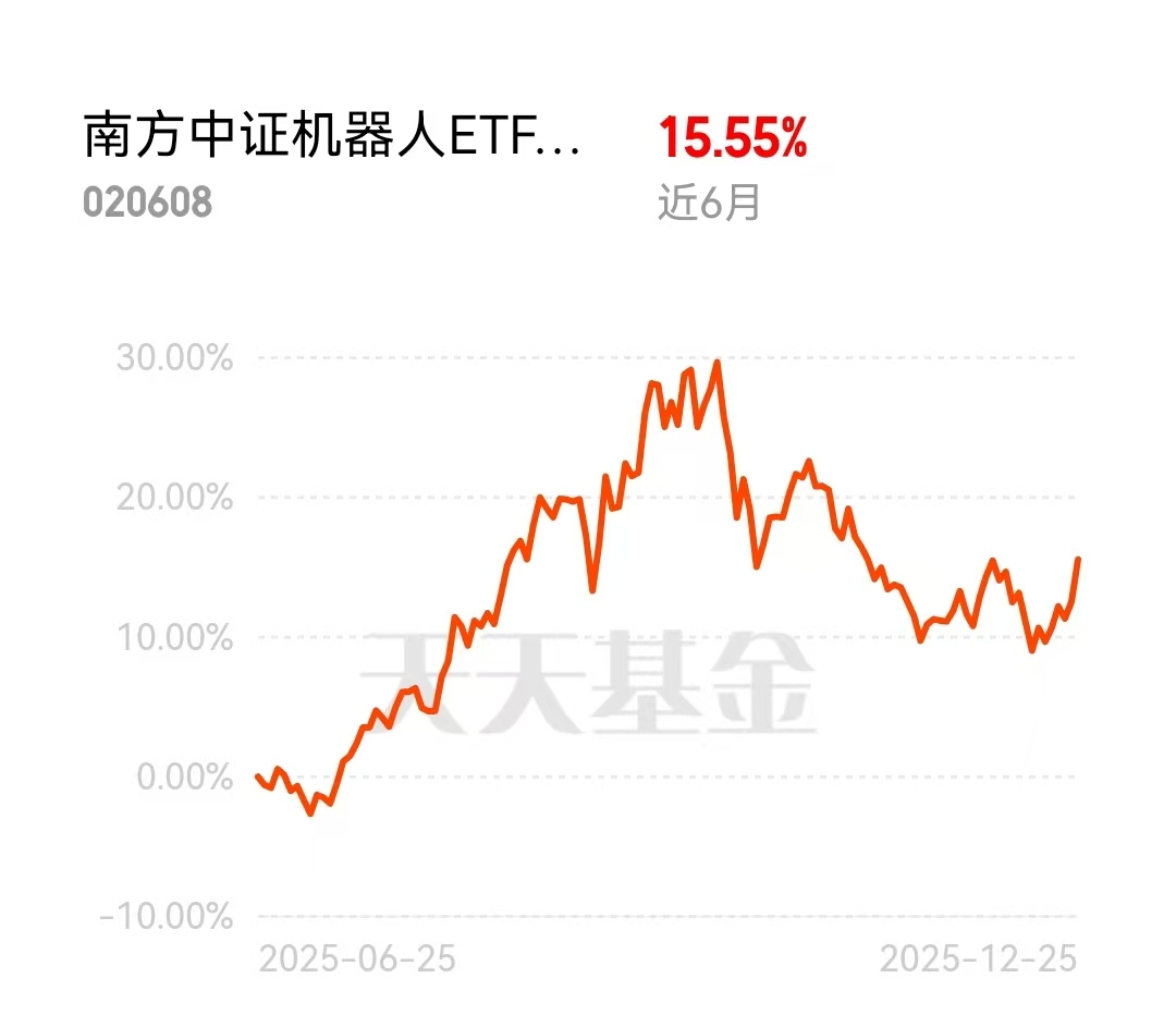 热度上来了,得考虑做点什么。今天买了点$南方中证机器人ETF发起联接C$(020608),市场热度真的很高。机器人ETF(159770)最新规模突破百亿元,年内净流入资金约83亿元,近5个交易日累计“吸金”达1.8亿元居深市同标的第一。这个基金跟踪中证机器人指数,成分股覆盖从上游核心零部件到下游系统集成的全产业链,重仓汇川技术、科大讯飞、石头科技等。今天预估要涨不少,因为人形机器人正从“技术验证”进入到“小批量商用场景落地”的早期阶段,处于规模化前夜。未来市场空间很大,IDC预测2025年中国商用人形机器人出货量约5000台,到2030年将增长至近6万台,年复合增长率超过95%,我觉得可以适当参与一下。#碳酸锂期价突破13万元!如何布局?#