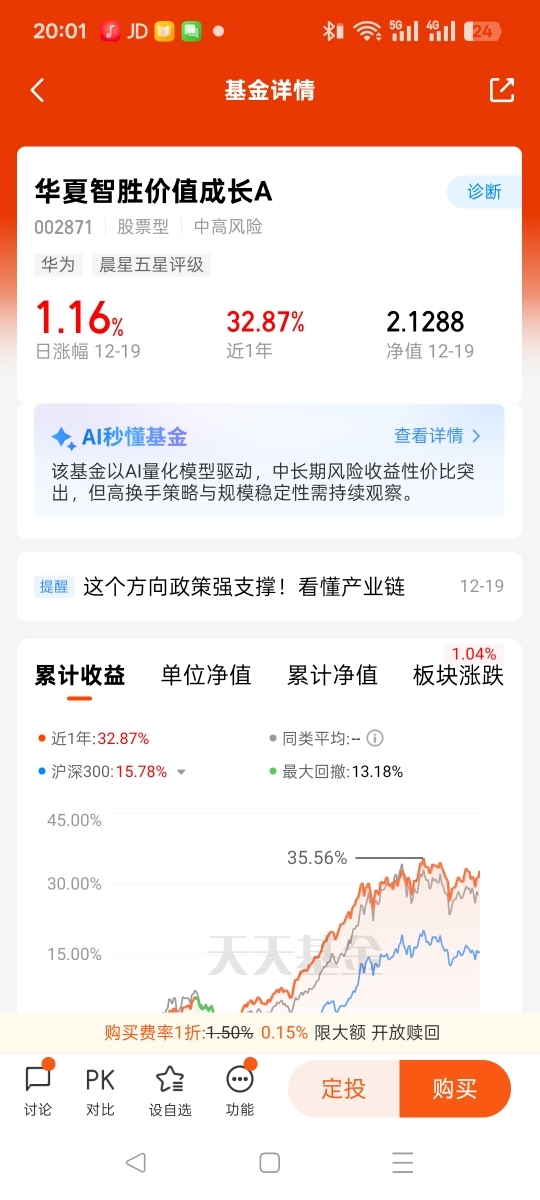 综合来看,华夏智胜价值成长A的量化策略凭借AI赋能的高效选股能力与分散化的风险控制体系,长期业绩表现亮眼,适合认可量化投资逻辑、能够承受中高风险、追求长期超额收益的投资者。但需重点关注市场风格切换与基金规模变化带来的潜在影响,建议结合自身风险承受能力与投资周期配置,震荡市中可通过定投方式平滑波动。