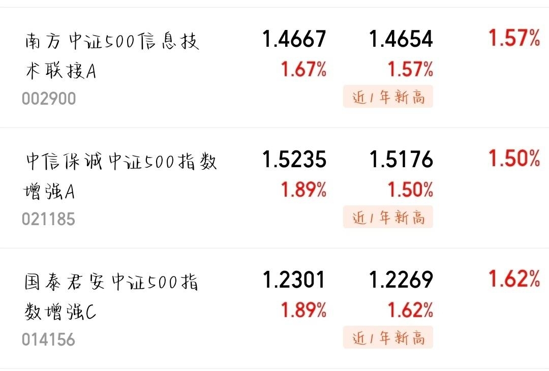 $国泰君安中证500指数增强C$ 上涨1.62%