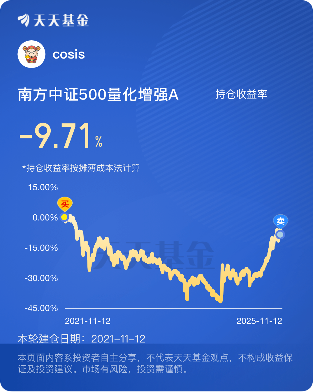 $南方中证500量化增强A$ 拿了五年还亏十个点,兰基不要买,建议退管理费,也不知道咋好意思收钱。还有另一只兰基:中欧医疗五年亏20个点,排名第一,这只拍第二