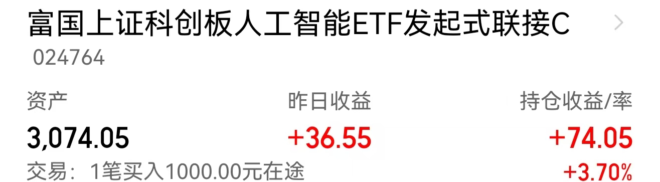 (1)今天低吸$富国上证科创板人工智能ETF发起式联接C(OTCFUND|024764)$,科创的人工智能板块现下依旧是主线方向,当前人工智能+的行动在陆续落地,国产替代加速和千亿级别算力缺口空间正在打开,而机构预测26年AI产业业绩继续增速将高达30%,从消息上看,近期百度、腾旭将发放15亿元春节AI红包,争夺用户入口,AI商业化提振市场。这些都提振了该板块的景气度。而富国这只基紧密跟踪了上证科创板的人工智能指数,覆盖了寒武纪、金山办公灯龙头优质企业,算力芯片、算法应用等方向均有涉及,符合本轮牛市行情方向,富国上证科创板人工智能近1个月涨幅高达21.88%,近一周涨幅5.98%,非常亮眼,而买入0申购,7免赎回,流动性也是非常好的,随着消息面的催化,小涵继续看好该方向,今天扩大仓位。