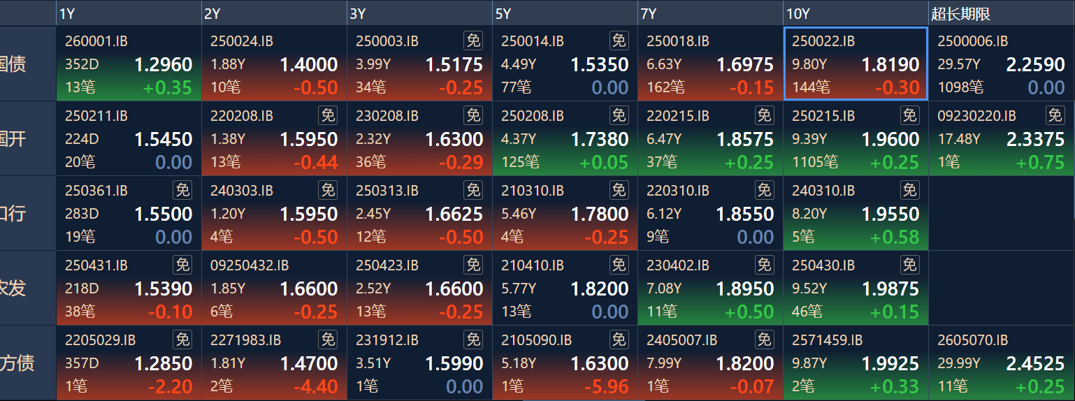 二、十年期国债收益率:1.82 -0.002%(国债收益率越涨,债市越跌,两者反向关系)