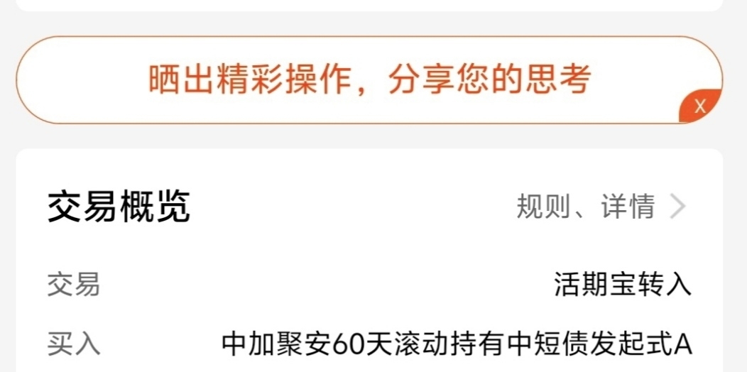 债基修复能力很强,基本也不会有太大波动,而且长期趋势稳健向上,拿长线没问题的~之前上车的$中加聚安60天滚动持有中短债发起式A$ 近半年收益也有2.25%