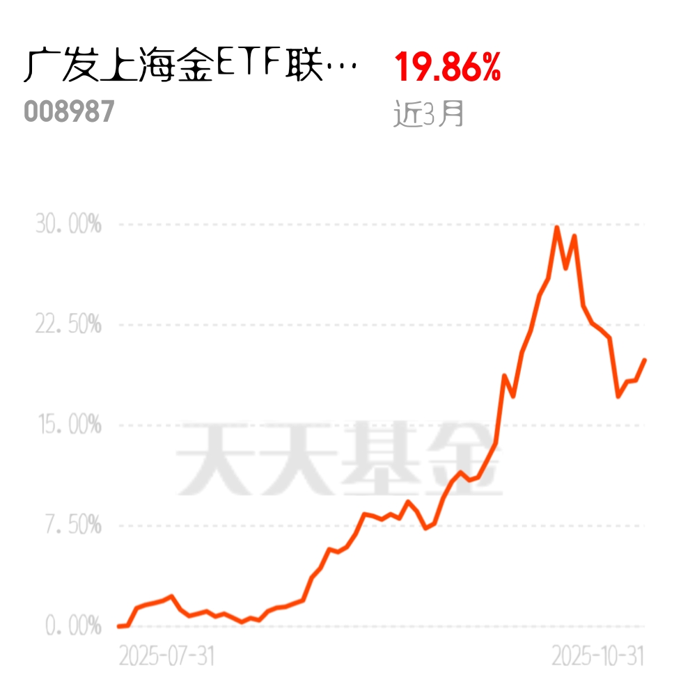 现在黄金回调完全不是什么问题,基本我追的这只$广发上海金ETF联接C$3个月能涨