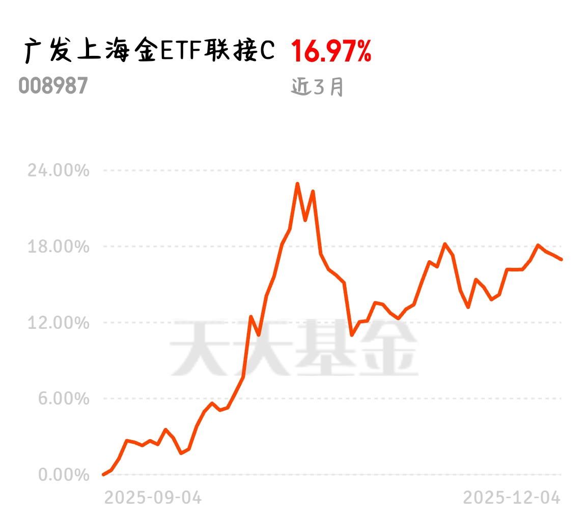 继续涨就继续加仓!这么长时间我算是知道黄金有多能涨了,$广发上海金ETF联接C$ 3个月就冲高超16%不是开玩笑的