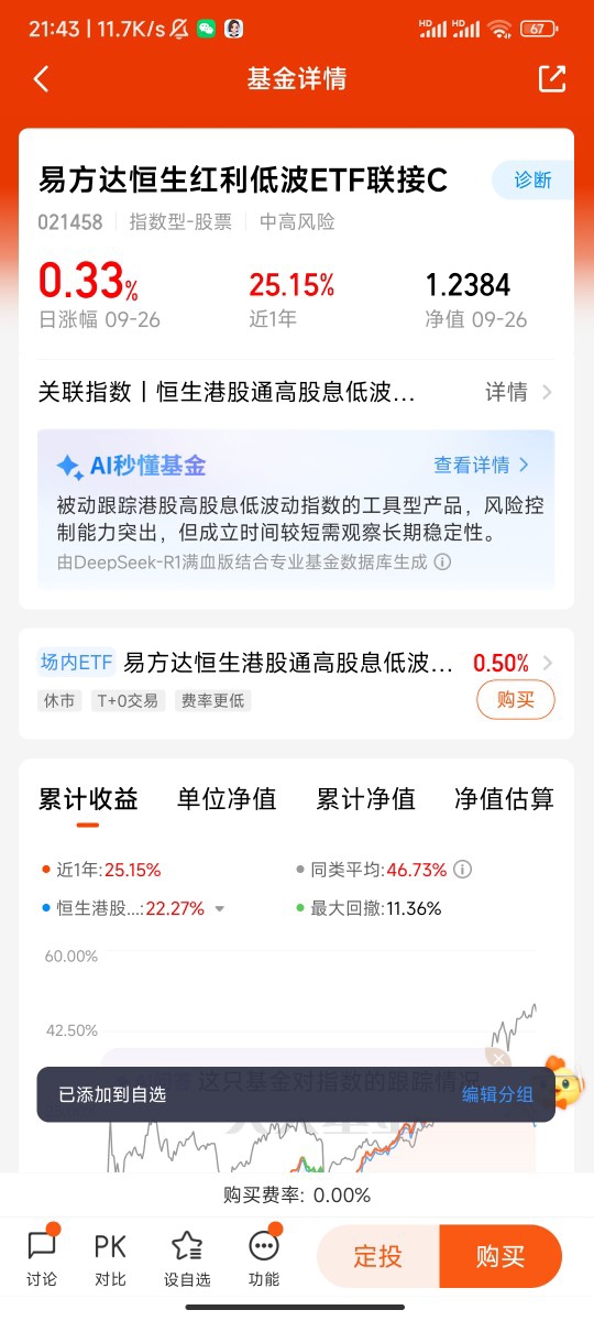 我是陷阱派,我看好$易方达黄金ETF联接C$$易方达恒生红利低波ETF联接C$近