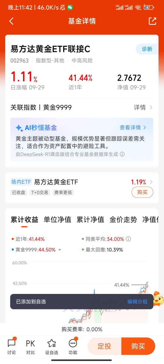 我是陷阱派,我看好$易方达黄金ETF联接C$近期最想分散配置的是黄金与港股高股息