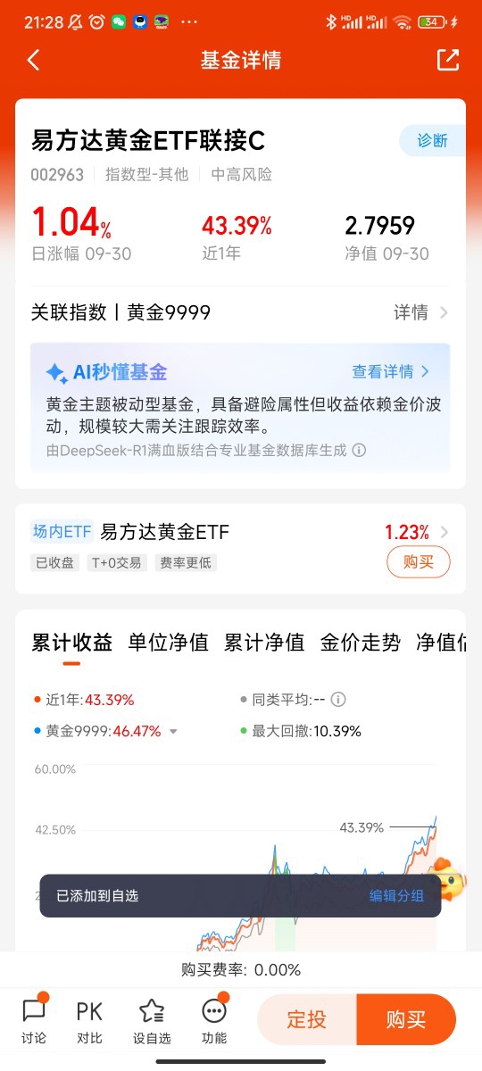 #热点话茬# 我是陷阱派,我看好$易方达黄金ETF联接C$