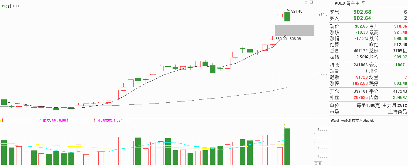黄金:缺口是补涨来的,高开冲高又回落?主力洗盘还是技术回踩?