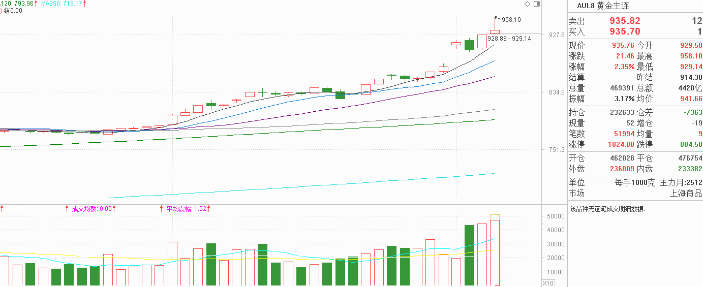 我的天呐家人们!黄金昨天高开高走中阳反弹蚀新高,从走势图上看已经回踩5天线了,符合此前认为的回踩不一定是下行,而是横向震荡等待5天线上移后再拉的预期。今天继续中阳反弹创新高,无疑就是资金继续流入的表现。所以10月9号指出过,既定事实就是已经涨起来了,再看9月平台甚至8月低点在短期甚至降息依然执行时是极低概率的事情,当下要做的就是尊重市场,顺势而为。其实本次黄金在节前已经有不少资金押注上行,9月22号明确看到资金流入的信号,由于国内与国外的交易时间不同,并不排除国内资金抢在休市前以更大规模的流入速度打下上涨基础,现在再追涨只能说是对前期买预期卖现实的策略理解不深。当然,本月降息预期已部分反应,如果还没有看好黄金的,只能交易12月是否降息和降息是否超预期的预期,如果以10月是否降息做逻辑的话,当下追涨性价比并不高,但继续潜伏不动是对的。