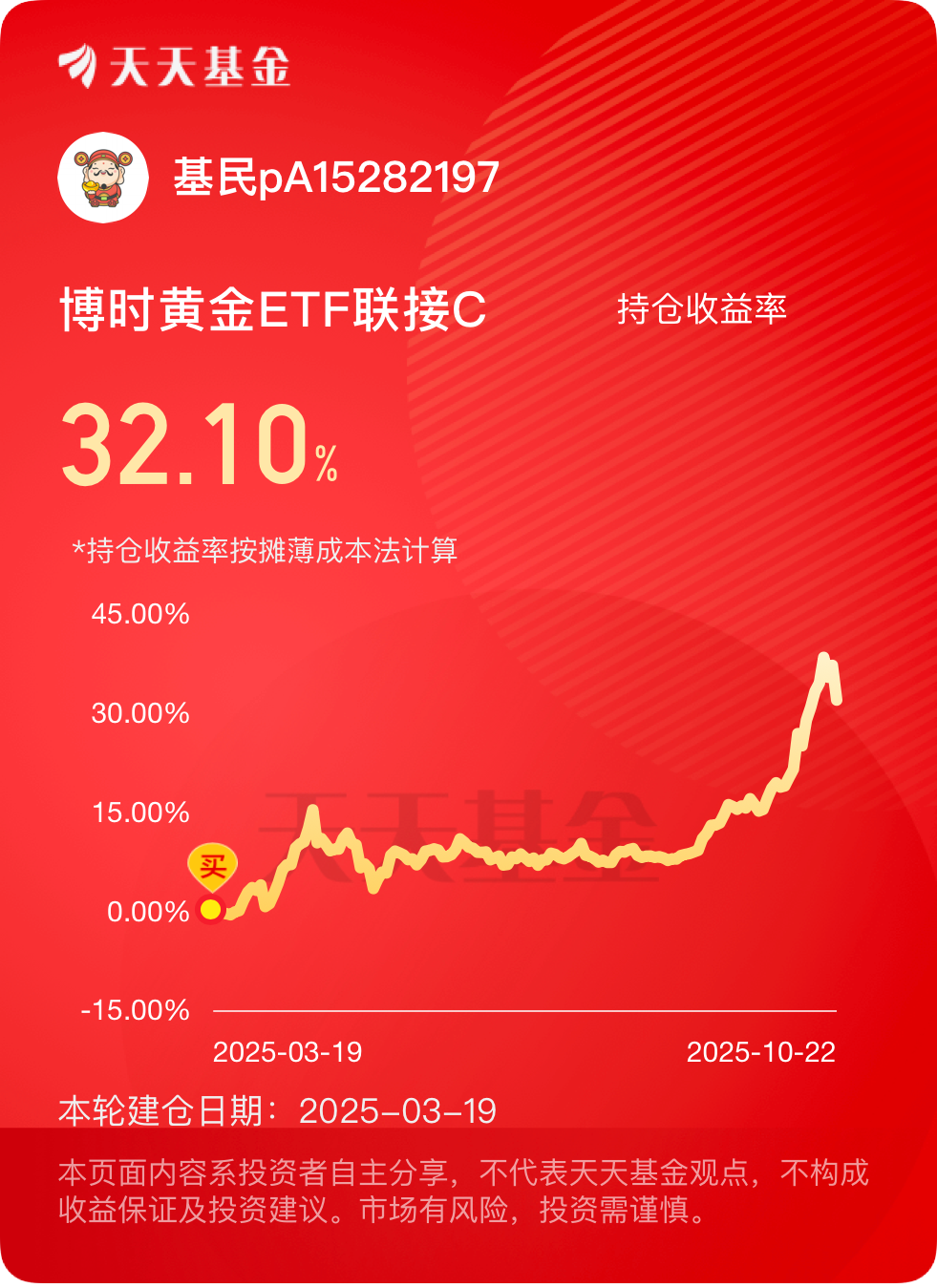 $博时黄金ETF联接C$规模超大,抗冲击能力强,小散买着也放心。