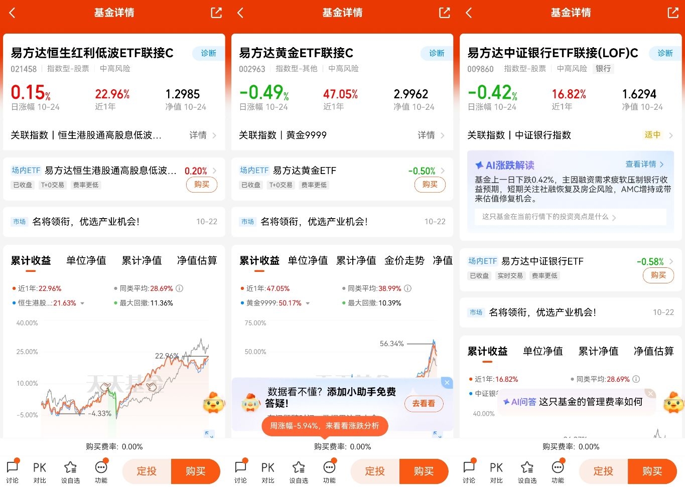 公司品牌与管理优势:易方达具有丰富的资产管理经验和专业的投研团队。其在指数基金领域有着良好的口碑和业绩记录,管理的多只ETF产品受到市场的广泛认可。选择易方达旗下的黄金ETF联接基金,可以借助公司的专业能力和资源,获得较为可靠的投资管理服务。