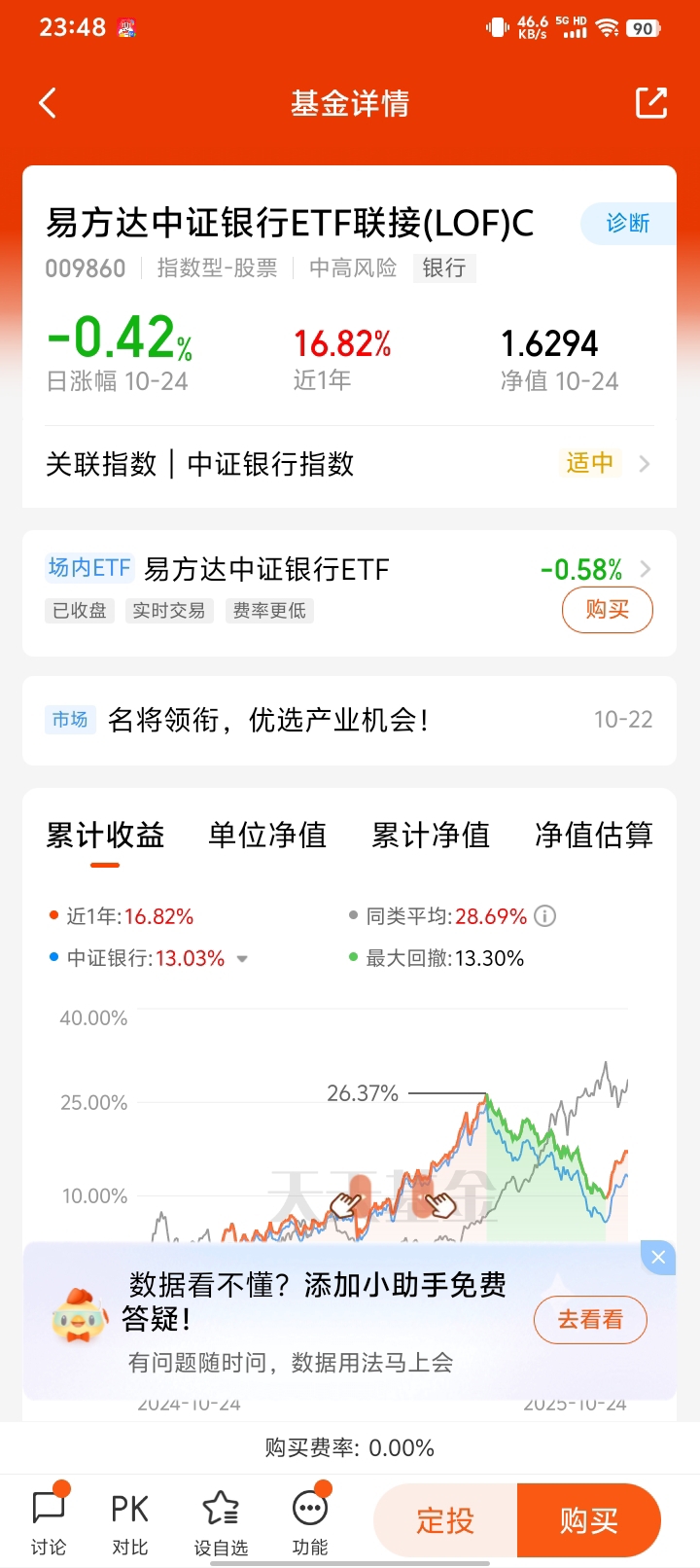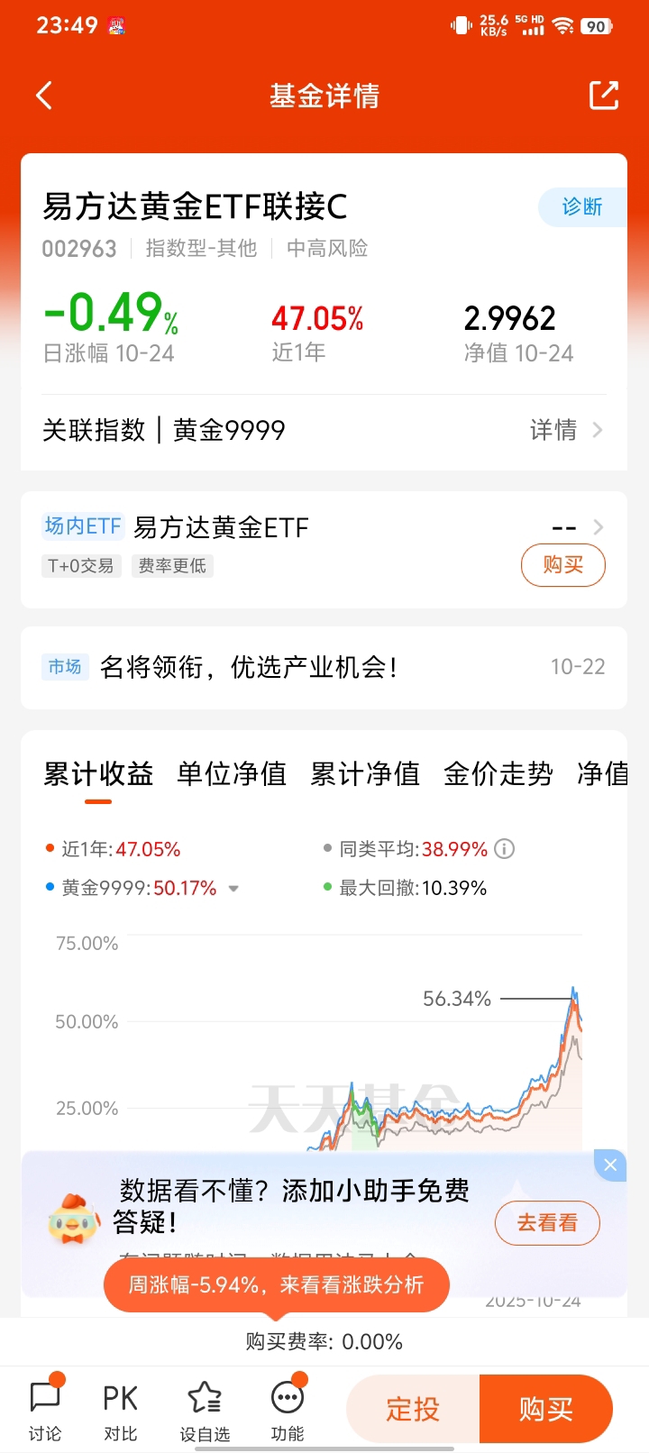 跟踪精准:通过投资易方达黄金 ETF 间接跟踪上海黄金交易所 AU9999 现货价格,历史跟踪误差控制在 0.2% 以内,远优于同类产品 0.5% 的平均水平,可有效反映黄金实际价值波动,使基金净值与黄金价格高度同步。