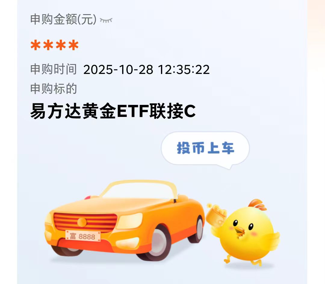 友友们,这两天股市有点强势,但是受短期因素影响,黄金大跳水,但是呢,我觉得月额不要过于担心,从长期来看,黄金硬逻辑不变,抗通胀、避险、央行买,长期不担心,大跌大加,小跌小加,我继续加仓$易方达黄金ETF联接C(OTCFUND|002963)$