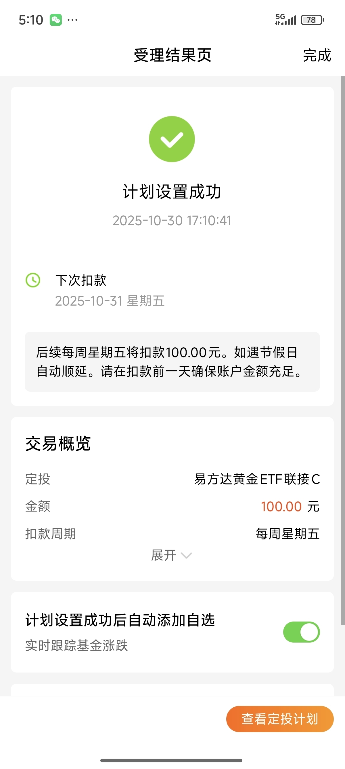- 定投纪律:每月工资到账先投500元黄金ETF,风雨无阻。