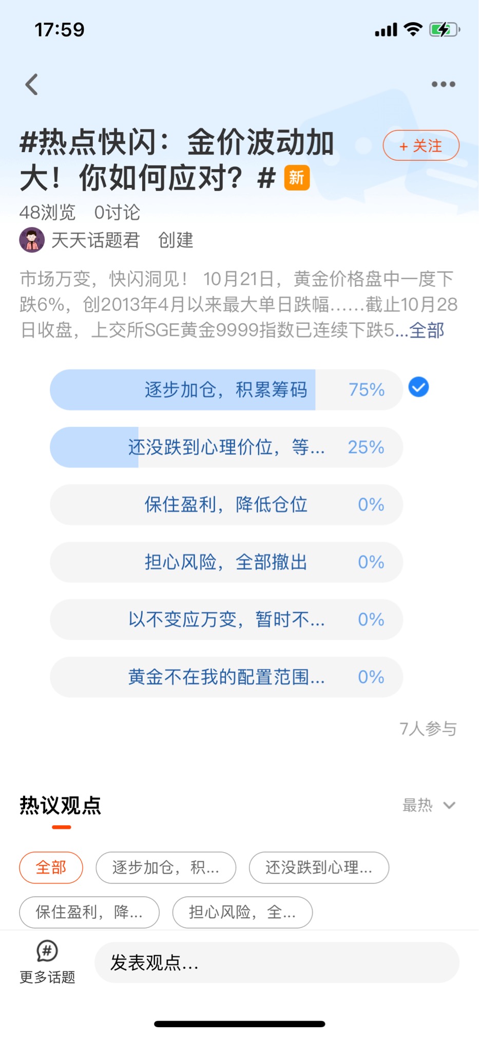 我在#热点快闪:金价波动加大!你如何应对?# 选择了“逐步加仓,积累筹码”