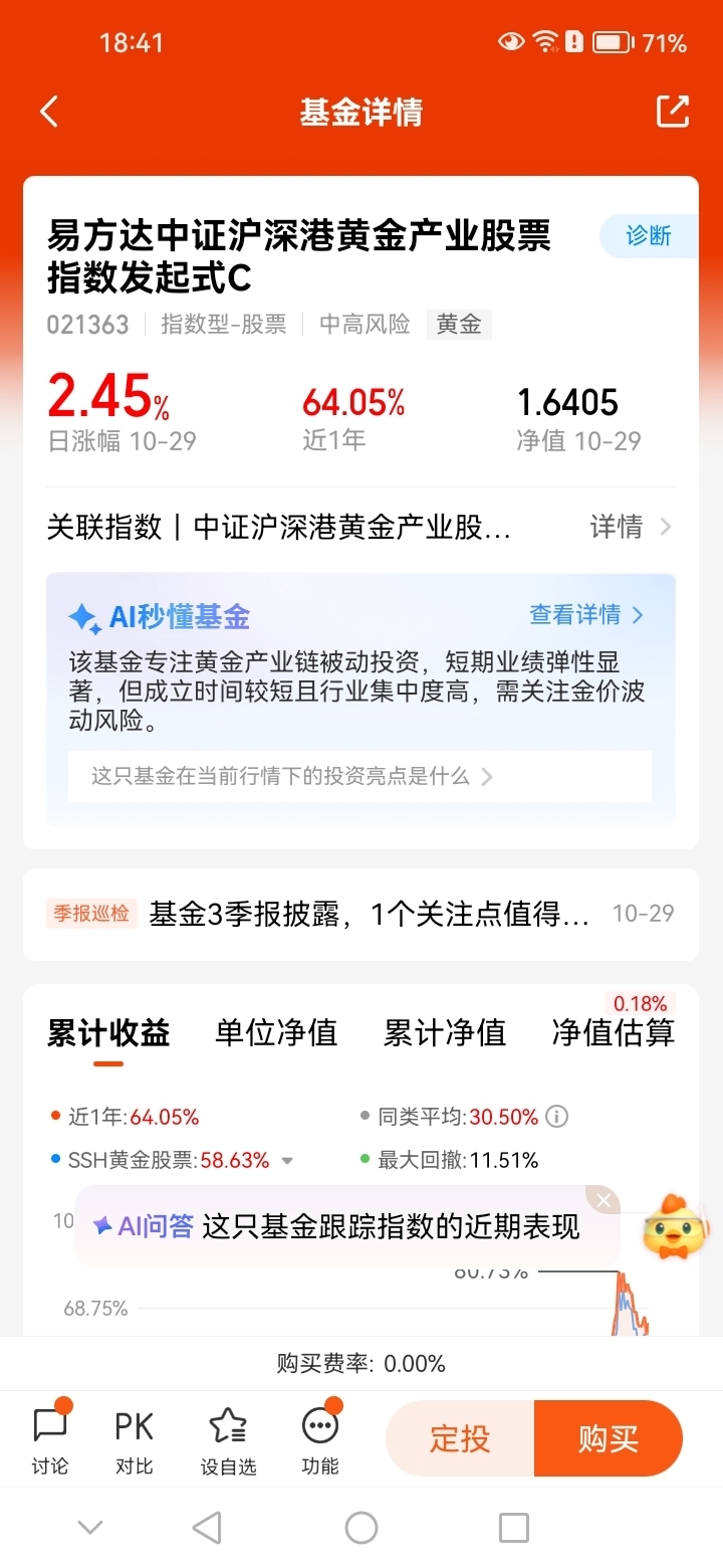 在黄金投资的道路上,选择合适的投资工具至关重要。$易方达黄金ETF联接C$ 以其独特的优势和卓越的表现,成为了我布局黄金市场的首选。该基金大大降低了投资者的交易成本,还紧密跟踪金价,使投资者能够间接投资黄金市场,享受金价上涨带来的收益。