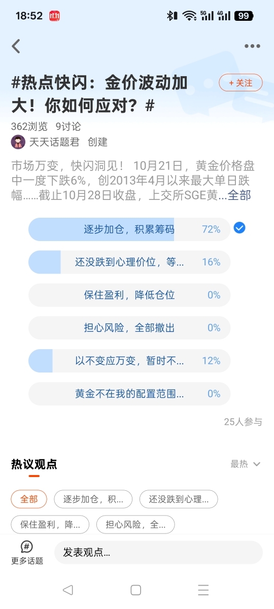 我在#热点快闪:金价波动加大!你如何应对?# 选择了“逐步加仓,积累筹码” ,这一选择既基于黄金的长期核心价值,也贴合当前市场波动的特性,具体原因如下: