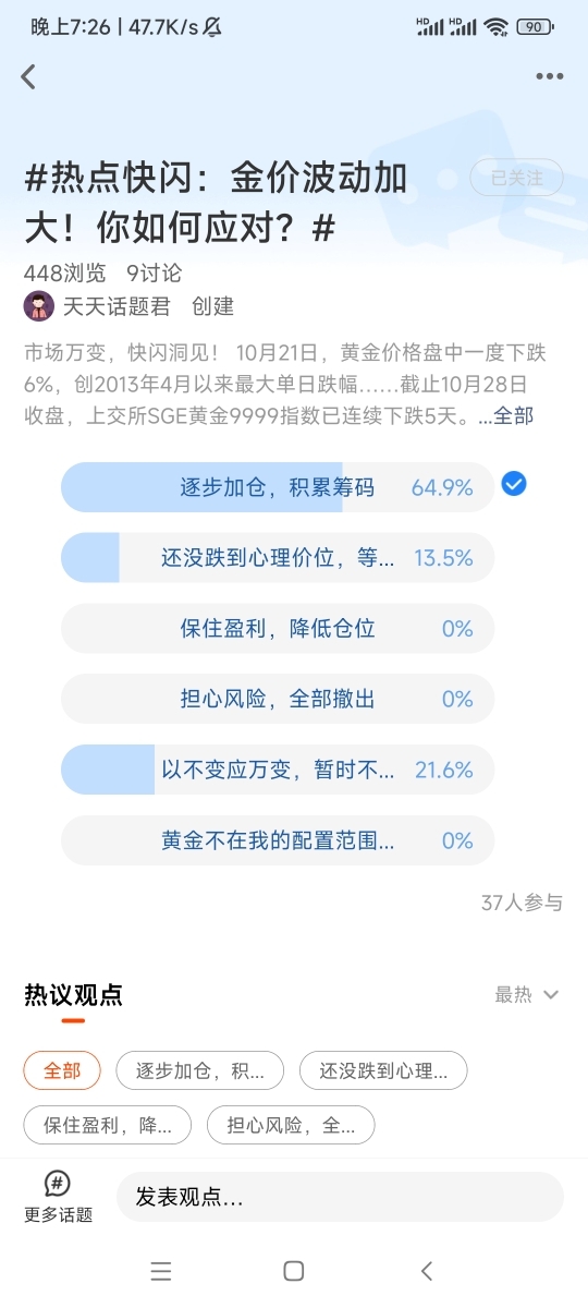 我在#热点快闪:金价波动加大!你如何应对?# 选择了“逐步加仓,积累筹码”