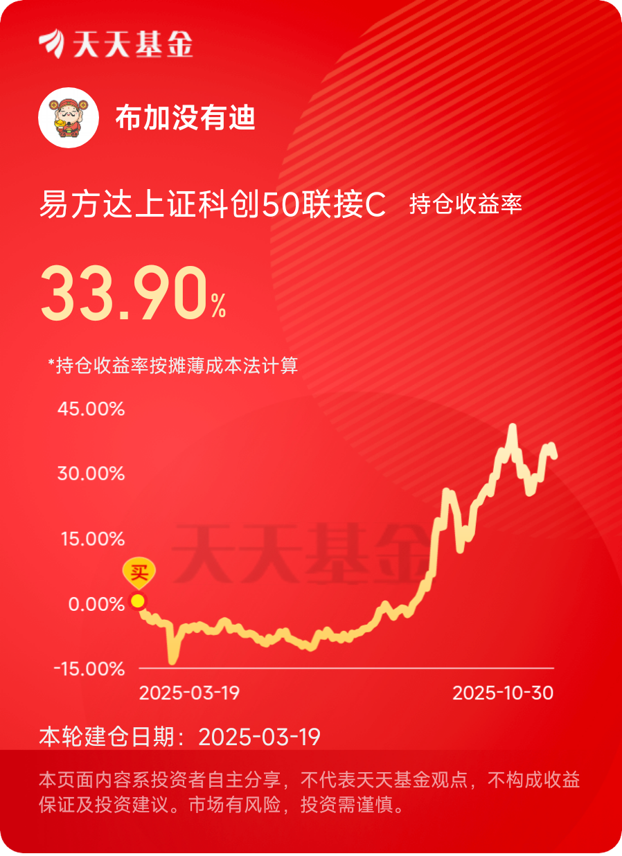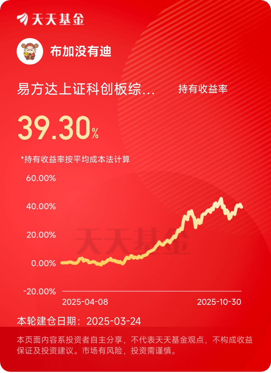 我之所以如此坚定,是因为看到了黄金的长期趋势潜力,也认可易方达黄金ETF联接C的专业运作能力。我会积极配置,通过分批布局摊薄成本,耐心等待黄金价值的长期释放,在波动中把握机遇,为投资组合筑牢“安全垫”的同时,争取分享黄金长期上行的收益红利。@易方达基金  #晒收益#