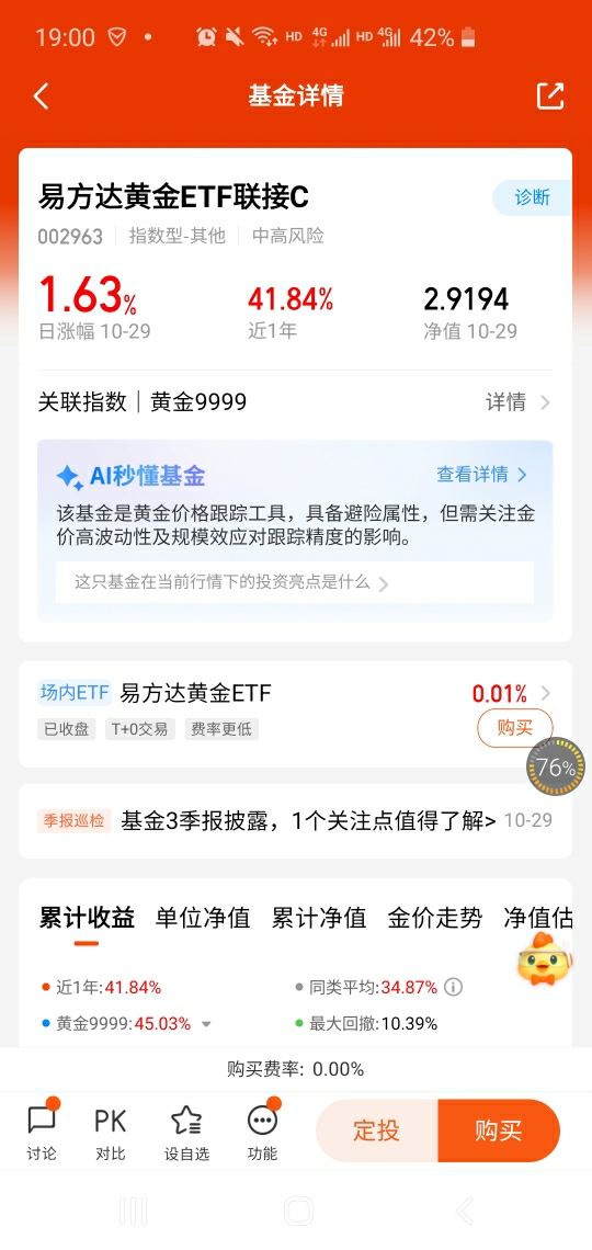 虽然现货黄金在突破4300美元/盎司后迎来了连续的调整,但我觉得调整的力度不够,等等再上车。我将持续保持关注,择机上车$易方达黄金ETF联接C(002963)$。@易方达基金