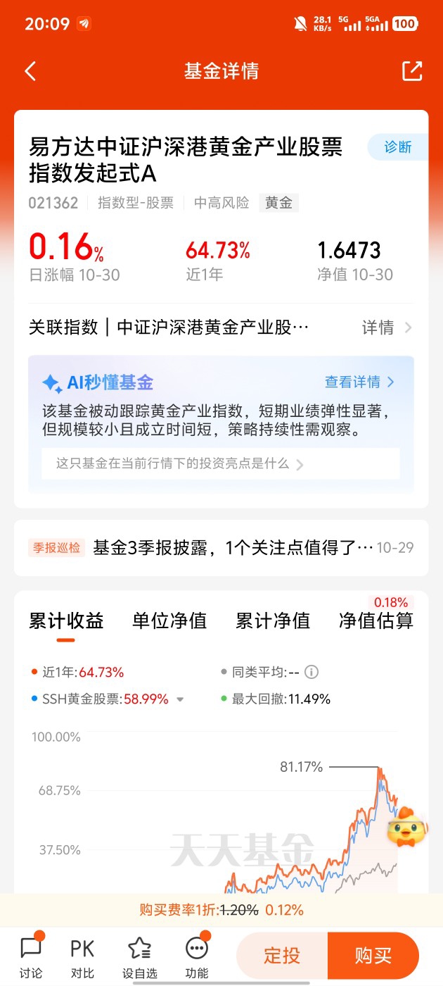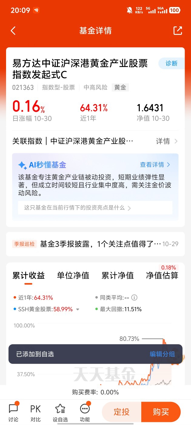 并且我持有多只易方达基金,也会持续支持$易方达黄金ETF联接A$ $易方达中证沪深港黄金产业股票指数发起式A$ $易方达中证沪深港黄金产业股票指数发起式C$