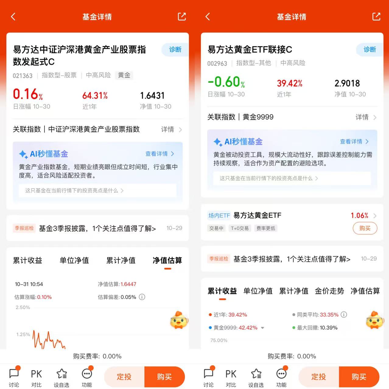 低门槛、高流动性:十元起投,支持定投,资金进出便捷,优于实物金条保管成本问题;
