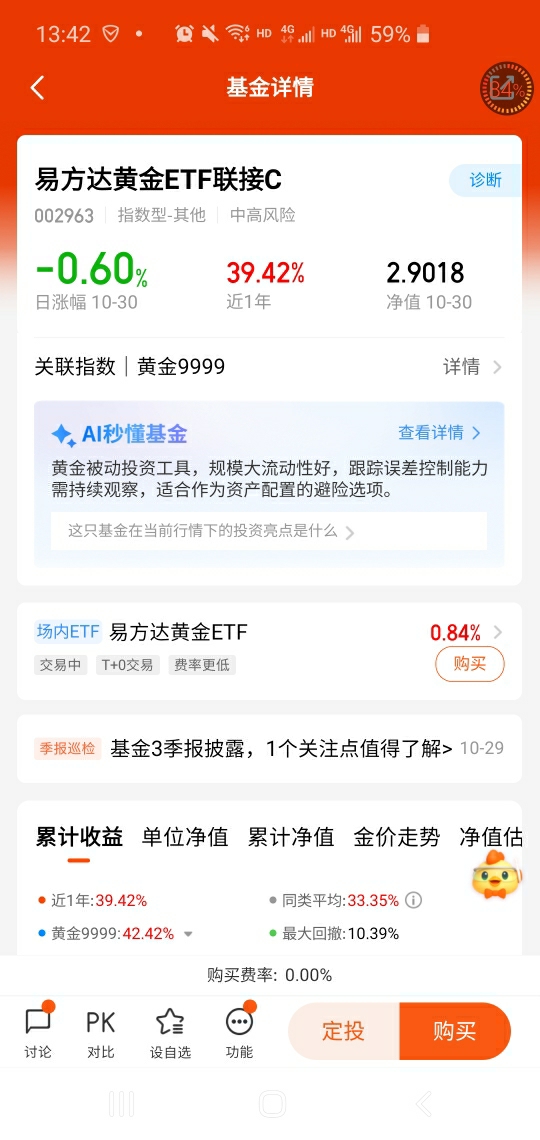 所以我会借道$易方达黄金ETF联接